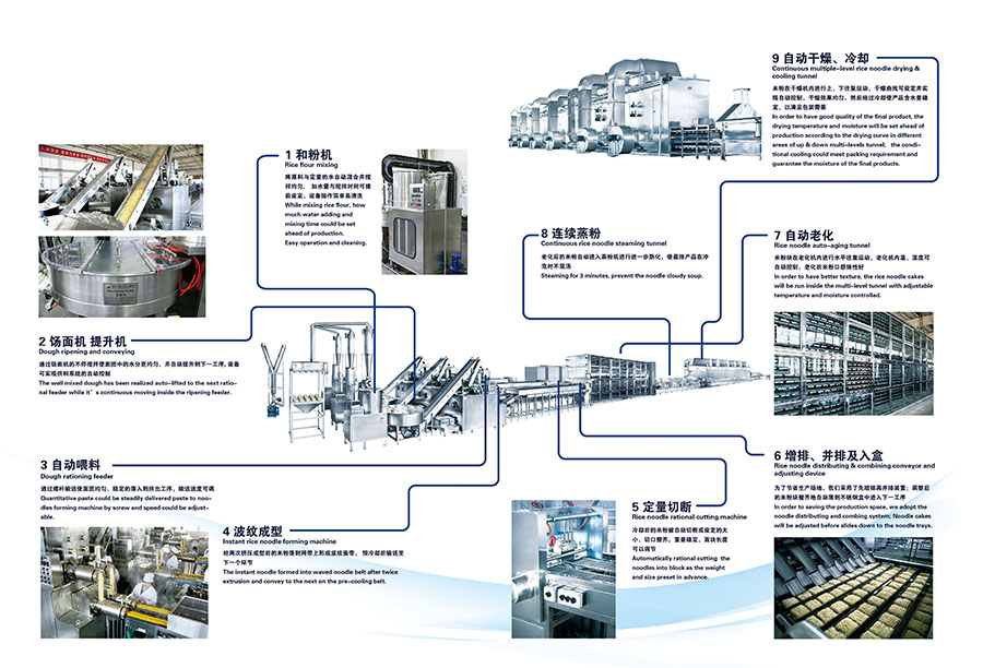 冷卻后的米粉被自動切斷成設定的大小,切口整齊,重量穩(wěn)定,面塊寬度及長度可以調節(jié);